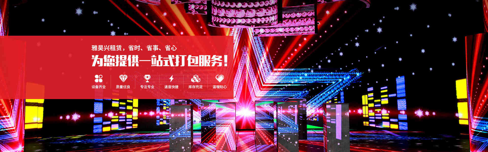 設備齊全:IT辦公、通訊、顯示、會議會展、演出舞美、年會慶典設備一應俱全;